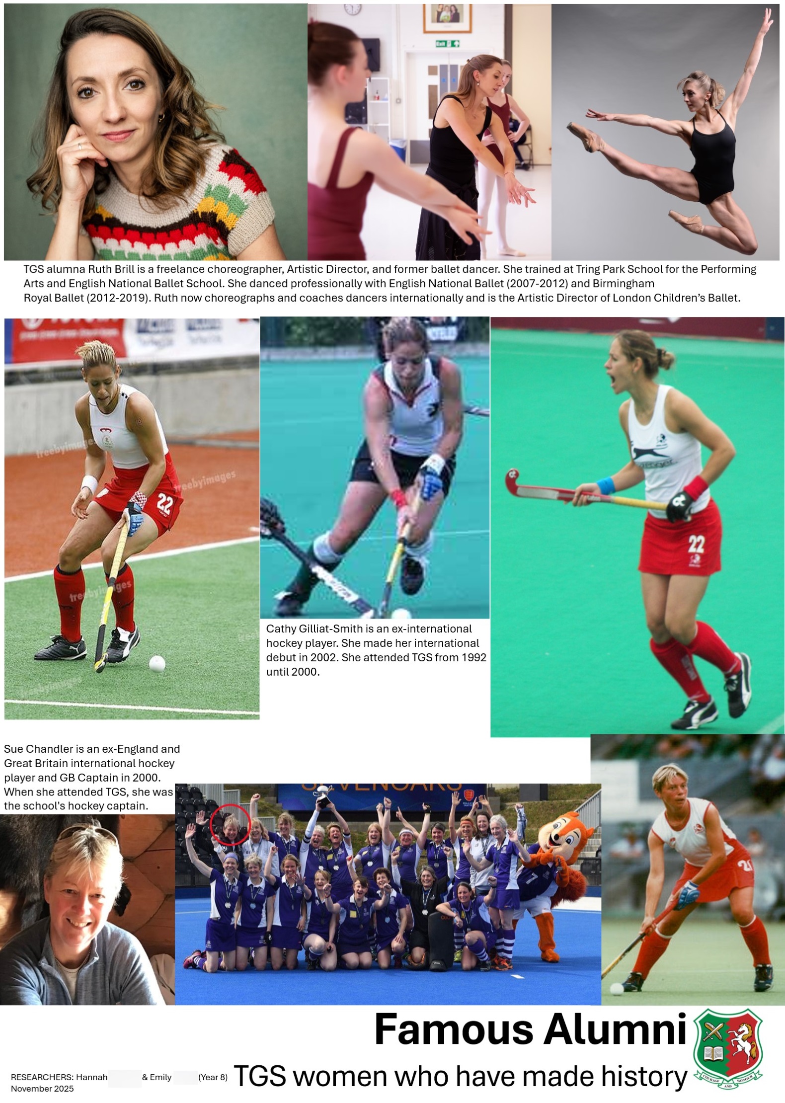 "Over the past few months, I have been working in the archives, to create posters about TGS’s alumni. To experience being a real archivist and looking through the school’s historical records was an honour. I have learnt so much and enjoyed every step of immortalising history. It is a huge privilege to have my work displayed in school, and I am humbled that I was a part in the extraordinary journey".
