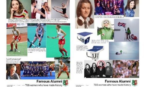 Last year the Archive Club created the lovely display that was in the main foyer for several months celebrating the different eras of the school. This year the project has been to create a series of posters for the Deputy Heads' Meeting Room. These have been curated and designed by the students and will be printed and framed to celebrate some of the wonderful stories from TGS students over the decades. Posters relate to a wide variety of areas of school history including famous alumni, the history of house names, artwork over the years and personal stories.